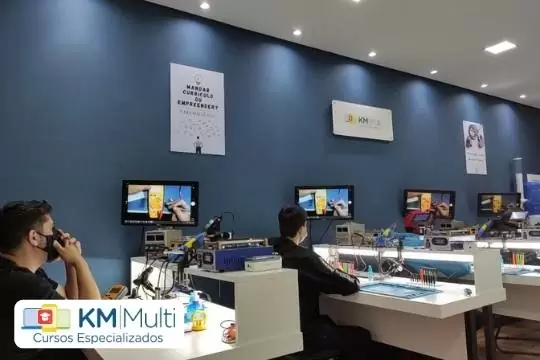 No Centro de Formação Profissional KM Multi Cursos, além de fazer o curso com professores atuantes na área e sempre por dentro dos defeitos do dia-a-dia, as aulas são práticas, você será orientado a como e onde comprar peças para executar os serviços, quanto cobrar e por onde começar a divulgar, além de receber dicas de ferramentas para um bom serviço. Disponibilizamos acompanhamento pós-curso para sanar dúvidas geradas no início das atividades profissionais pelos canais de atendimento da escola.
